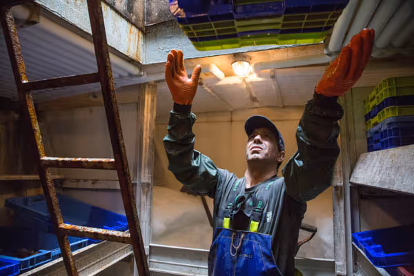 Dans l’humidité, le roulis, le bruit, les positions sont inconfortables, le travail est laborieux et fatigant. Les langoustines sont nettoyées à l’eau de mer avant d’être placées dans des viviers à une température de 7°C environ pour leur éviter le stress. Le poisson est vidé, mis en caisse et descendu dans les cales pour y être glacé.